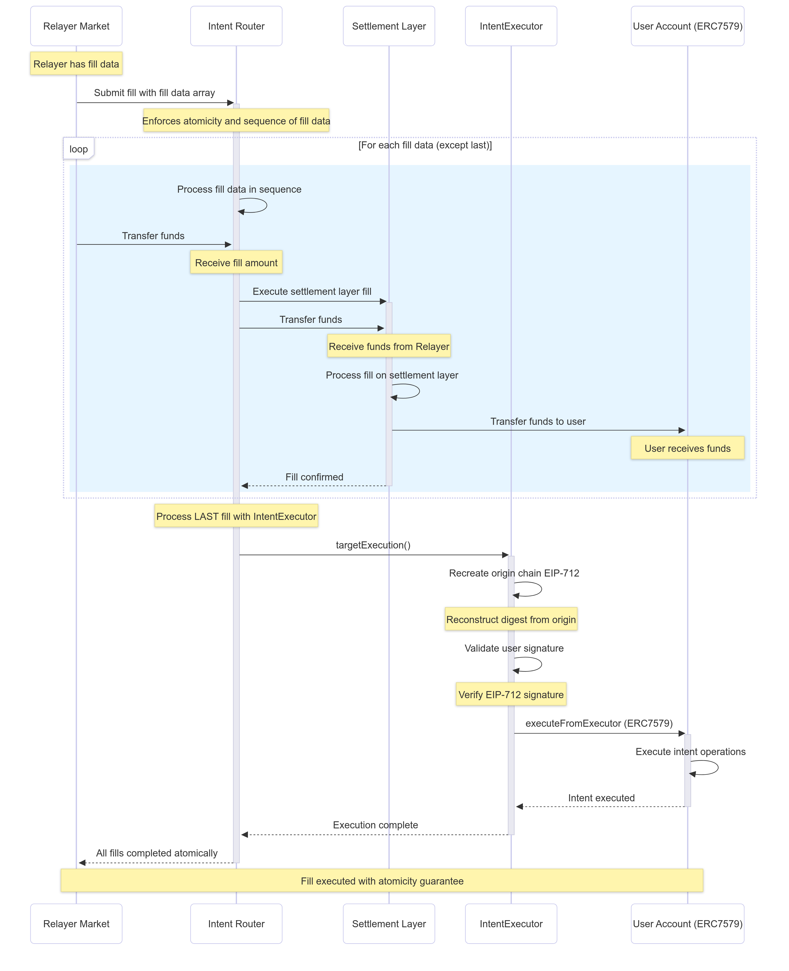 - Intent Router: An onchain component that receives and dispatches intent operations to the relevant smart account and settlement layer(s).